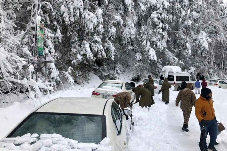 Pakistan'da yoğun kar yağışı etkisini sürdürüyor. Pencap eyaletine bağlı tatil beldesi Murree ve Galyat bölgesinde dün akşamdan itibaren etkili olan kar yağışında araçlarında mahsur kalan 21 kişi hayatını kaybetti.