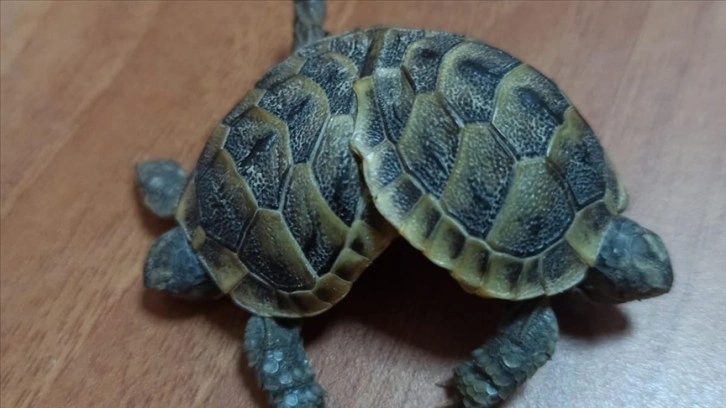 Vücutları yapışık iki başlı kaplumbağa, haber verilmesi üzerine Pamukkale'ye gelen Doğa Koruma ve Milli Parklar Denizli Şube Müdürlüğü ekiplerine teslim edildi.