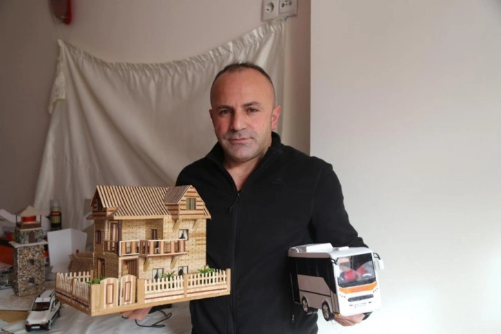 Araçlarını kullanamadıkları 1 buçuk yıllık süreçte hobi olarak bu işe başladıklarını dile getiren Talip Çolak, “Daha önce pandemide 1 buçuk yıl boş kaldığımız ve canımız sıkıldığı için hobi olarak bir şeylerle uğraşmak istedik. Bu şekilde maket otobüs gibi değişik güzel şeyler yapmak istedik hobilerimizi geliştirmek açısından. Kenan abi de yapıyordu onunla birlikte devam ettirdik. Çok soranlar oluyor ama şu an çalıştığımız ve yoğun olduğumuz için fazla cevap veremiyoruz, ilerleyen zamanlarda düşüncelerimiz var. İlk maket otobüsü yaptık. Dolmuşçuluk yaptığımız için çalışamadığımız için kendimiz bu maketleri yaparak uğraşmak istedik zaman geçirdik. Mukavva ve karton kullanıyoruz. Onun yanında yapıştırıcı, şeffaf cam gibi malzemelerle yapıyoruz. İnsanlara boş zamanlarında kendi yeteneklerini geliştirmelerini yani insanların içinde vardır böyle şeyler onları ortaya çıkarmalarında fayda var boş zamanlarını geçirmek açısından. İyi stres alıyor güzel oluyor.” dedi.