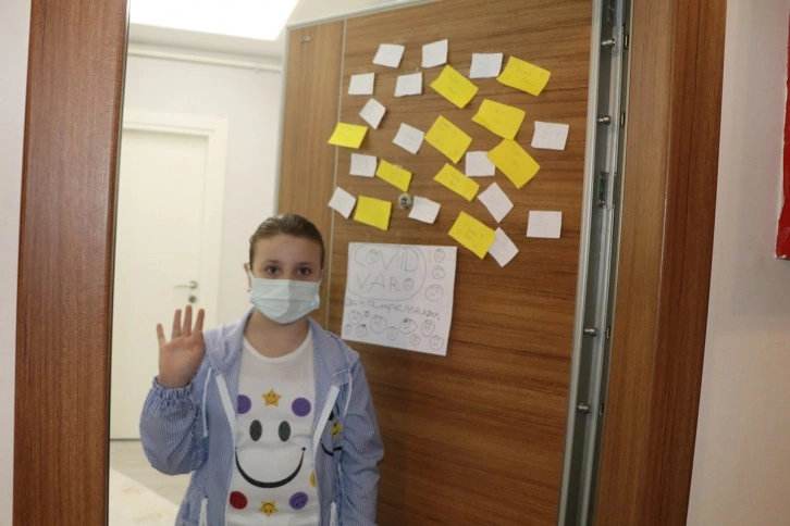 Arkadaşlarının kapıya astığı notlarla çok mutlu olduğunu söyleyen 9 yaşındaki Ece Nur Avcı “Arkadaşlarım moralimizi yüksek tuttular. Kapıya astığım yazıyı görünce geçmiş olsun notları bıraktılar. Covid olmamızın sebebi sorumsuz insanların suçu. Sorumsuz insanlar yüzünden evde kalmak zorunda oluyoruz. Evde kaldığımız için de çok mutsuzum. Öğretmenimi, okulumu ve babamı çok özlüyorum. Okula gitmeyi de çok özledim. Babam da karantina da olduğumuzdan beri eve gelemiyor. Ben aslında iyiyim ama bazen ateşim çıkıyor. Biraz mutsuzum. Karantinadan çıkınca arkadaşlarımla oyunlar oynayıp onlarla beraber eğleneceğim. Buradan herkese sesleniyorum sosyal mesafenizi koruyun. Mutlaka yedek maskeniz olsun. Daha kırk günlük bebek kardeşim bile korona oldu, herkesin dikkatli olması gerek. Ben ve bütün aileme Covid Delta varyantı bulaştı. Lütfen tedaviniz bitmeden sokağa çıkmayın. Ben sizin yüzünüzden okuluma gidemiyorum. Derslerimden geri kalıyorum. Lütfen daha dikkatli olun” dedi.