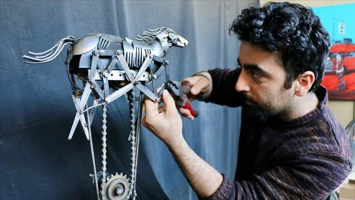 Mustafa Tuğrul, AA muhabirine, atık metallerden figüratif heykeller yaptığını söyledi.