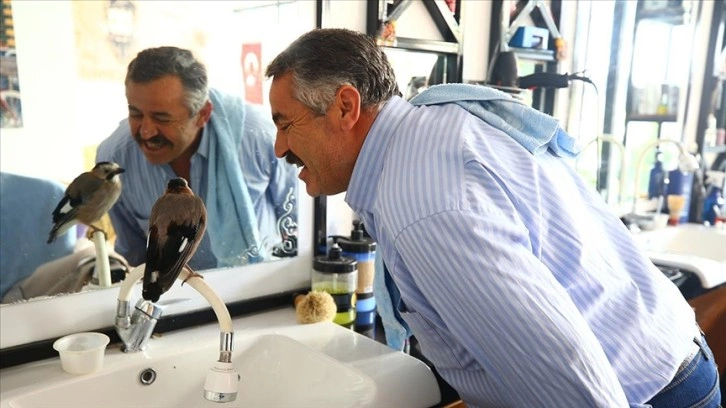 Kentte uzun yıllardır erkek kuaförü işleten 50 yaşındaki Taşkesen, temmuz ayında bir arkadaşının bahçesinde bulduğu yaralı karga yavrusunu sahiplendi.