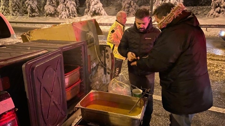 Sakarya Valiliği koordinesinde AFAD ve Kızılay ekipleri, otoyolun Hendek kesimindeki dinlenme tesislerinde bekleyenlere sıcak çorba dağıttı.