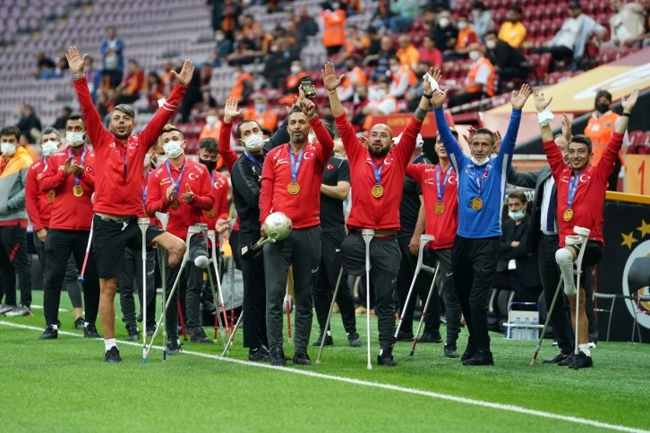 Avrupa şampiyonu Ampute Futbol Milli Takımı, Galatasaray - Göztepe karşılaşmasında sarı-kırmızılıların daveti üzerine stada geldi. Milli Takım teknik heyetine ve futbolculara başarılarından dolayı plaket verildi.