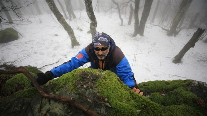 Trakya'da da tırmanışlar yapan Fidan, Kırklareli'nde 1031 metre yüksekliğindeki Mahya Dağı'na kar ve fırtınaya rağmen tırmanmayı başardı.