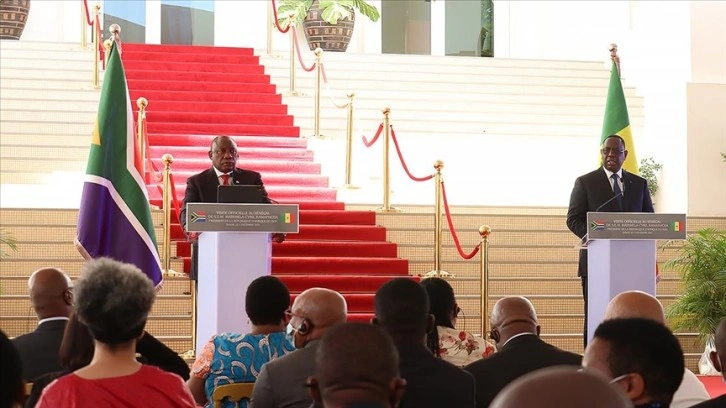 Senegal Cumhurbaşkanı Macky Sall ve Güney Afrika Cumhurbaşkanı Cyril Ramaphosa, Cumhurbaşkanlığı Sarayı'nda yaptıkları baş başa görüşme sonrasında ortak basın toplantısı düzenledi.