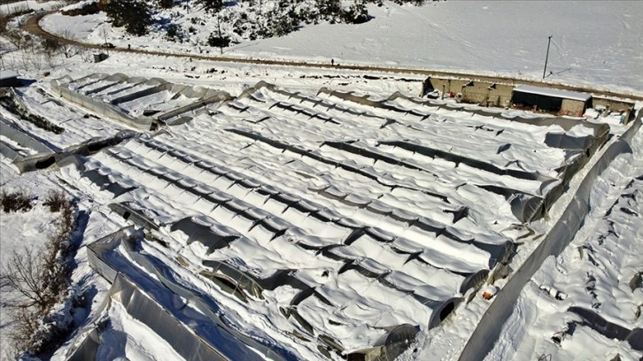 Osmaniye'nin Hasanbeyli ilçesinde, kar kütlesi biriken gül serasının çatısı çöktü.