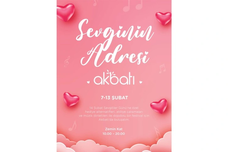 Akbatı'da bu yıl Sevgililer Günü etkinlikleri erken başlıyor. 7-13 Şubat tarihleri arasında “Sevginin Adresi Akbatı” temasıyla zemin kat havuz önünde gerçekleşecek etkinliklerle ziyaretçiler festival tadında bir hafta geçirecek. Verilen bilgiye göre bir hafta sürecek etkinlik, en güzel aşk şarkılarının seslendirileceği müzik dinletilerinin yanı sıra ziyaretçilerin kendi hediyelerini yapabileceği birbirinden keyifli atölyelere de ev sahipliği yapacak. Sevgililer Günü ruhunu yansıtan incelikli düşünülmüş hediye alternatiflerinin yer alacağı marka stantları da Sevgililer Günü öncesinde misafirlere pek çok seçeneği bir arada sunacak.