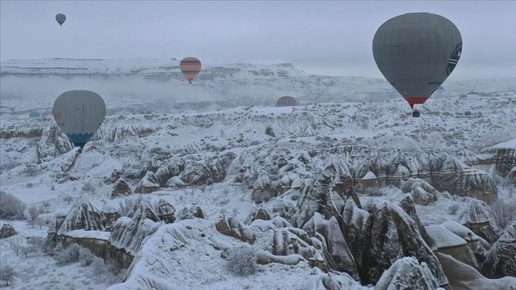 Doğal, tarihi ve kültürel zenginlikleri ile her yıl yüzbinlerce turistin ziyaret ettiği Kapadokya bölgesinde sabah yer yer etkili olan sis, karın ortaya çıkardığı görünümle bütünleşince ortaya güzel görüntüler çıktı.