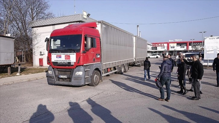 Sırbistan'ın başkenti Belgrad'dan Türkiye'deki depremzedeler için hazırlanan gıda ürünlerinin bulunduğu tırlar, Türkiye'ye hareket etti.