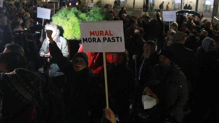 Sırbistan İnsan Hakları Gençlik Hareketi (YIHR) tarafından kaldırılmak istenen ancak İçişleri Bakanlığının koruma altına aldığı duvar resmine kireç dökülmesinin ardından gerginliğin devam ettiği Belgrad'da toplanan kalabalık, Sırbistan'ın savaş suçlularını koruyan tavrını kınadı.