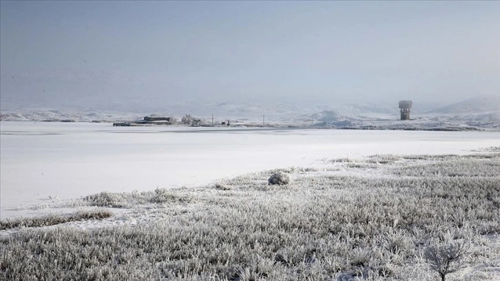 Hava sıcaklığının sıfırın altında 15 dereceye kadar düştüğü bölgede soğuk havanın etkisiyle Tödürge Gölü dondu.