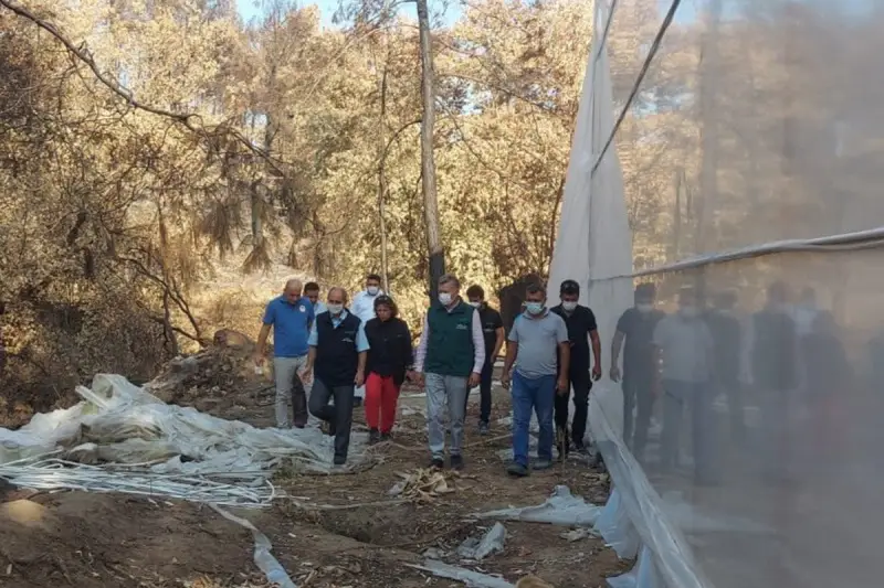 Tarım ve Orman Bakanlığı Tarım Reformu Genel Müdür Yardımcısı ve Tarım Sigortaları Havuzu Yönetim Kurulu Üyesi Bekir Engürülü, Tarım Sigortaları Havuzu Yönetim Kurulu Üyesi ve Tarım Sigortaları Havuz İşletmesi Genel Müdürü Serpil Günal, Tarım Reformu Genel Müdürlüğü Tarım Sigortaları ve Doğal Afetler Daire Başkanı Kamil Özdemir, Tarım Sigortaları Havuz İşletmesi Genel Müdür Yardımcısı Tufan Özel ve beraberindeki heyet, yangın sebebiyle meydana gelen hasarları yerinde incelemek, üretici ile yetiştiricilere geçmiş olsun dileklerini iletmek üzere, 12 ve 13 Ağustos tarihlerinde, Mersin'in Aydıncık ilçesinde, Antalya'nın Manavgat ilçesinde ve Muğla'da bir dizi ziyaret gerçekleştirdi.Heyet, ilk olarak Mersin'in Aydıncık ilçesindeki üretici ve yetiştiricilerle bir araya gelerek, geçmiş olsun dileklerini iletti. Programın devamında, Antalya'nın Manavgat ilçesinde yangın nedeniyle serası hasar gören sigortalı üretici Mustafa Mercan ziyaret edildi. Sigortalı üreticiye, 321 bin TL tazminat ödemesi, gerçekleştirilen sembolik çek töreni ile takdim edildi.