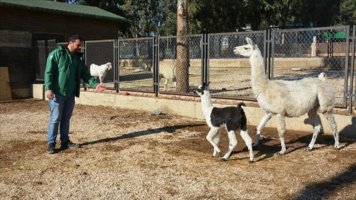 Tarsus Doğa Parkı'nda doğum yapan lamanın yavrusuna "Amokaçi" adı verildi.