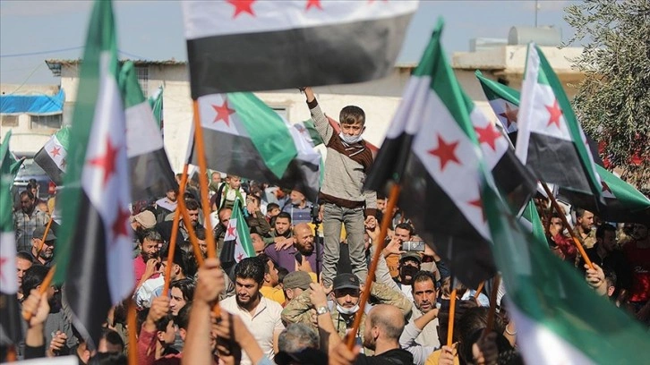 Yerinden edilen Tel Rıfatlılar, evlerini işgal eden terör örgütü YPG/PKK ile Suriye’nin kuzeyine saldırılarını sürdüren Rusya ve Esed rejimini protesto etti.