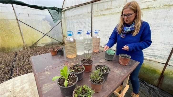 Erol, tıbbi ve aromatik bitkiler için gerekli gübre veya destek için yine fide atıkları, otlar ve yiyeceklerden posalar ürettiğine dikkati çekerek, "Atık olan fidelerden damıttığım suları yine bitkilerime gübre ve böcekleri kaçırıcı etki olarak veriyorum. Bunun dışında bahçeden topladığım atık ot, yaprak, dal parçası gibi atıkları kompost haline getiriyorum ve bitkilerime toprak gibi kullanıyorum. Böylece bitkileri kimyasal kullanmadan beslemiş oluyorum." diye konuştu.