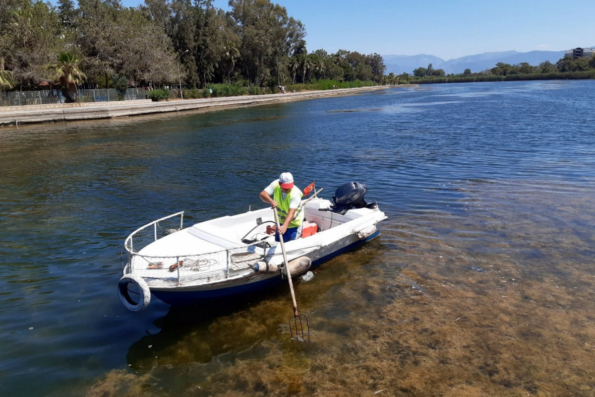 Yerli ve yabancı turistlerin önemi uğrak yerlerinden olan Titreyengöl'de görev ve sorumluluk alanında olmamasına rağmen temizlik çalışması gerçekleştiren Manavgat Belediyesi ekipleri, su üzerindeki pet şişe, plastik atıklar, yiyecek atıkları ve yosunları temizledi.
