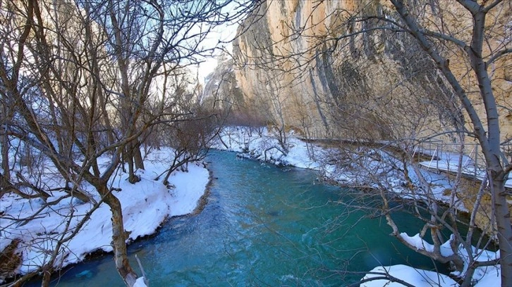 Somuncu Baba Külliyesi'nin yanı başında jeolojik dönemlerdeki kırılmalarla oluşan, sarp kayalıklar arasından suyu taşıyan ve ilçenin önemli turistik değerlerinden biri olan kanyon, bölgede etkili olan soğuk hava ve kar yağışı ile beyaza büründü.