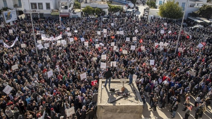 Tunuslular, "Darbeye Karşı Vatandaşlar Girişimi"nin çağrısı üzerine parlamento binası önünde yer alan Bardo Meydanı'nda toplandı.