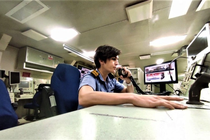 TCG Heybeliada Gemisi'nde Savaş Harekat Bölüm Amiri olarak görev yaptığını ifade eden Deniz Yüzbaşı İrem Köksal, “Savaş Harekat Bölümünde idari ve cari işleri icra etmekle beraber, geminin eğitim faaliyetleri ile harbe hazırlık seviyesini takip etmek, idamesini sağlamak, gerginlik, harp durumunda oluşturulacak harekat kontrol merkezini işletmekten, gemi komutanına karşı sorumluyum. Savaş Harekat Merkezi, gerginlik ve harp durumunda geminin yönetildiği ve karar verildiği merkez olması sebebiyle çok önemlidir. Gerginlik, harp durumunda tehdidi bertaraf etmek ve geminin bekasını sağlamak üzere, gemi savaş durumuna, personel savaş yerlerine alınır. Savaş yerleri donatıldığında 4 farklı kontrol merkezi tesis edilir. Bunlar; komuta kontrol, harekat kontrol, gemi kontrol ve hasan kontrol merkezleridir. Komuta kontrol merkezi, komutanınınız tarafından yönetilmekte ve komutanımız bu görevi savaş harekat merkezinden icra etmektedir. Bu kontrol merkezlerinden elde edilen tüm bilgiler, komutanın en doğru kararı, zamanında verebilmesi maksadıyla savaş harekat merkezine rapor edilir. Kontrol merkezlerinde elde edilen tüm bilgiler, savaş harekat merkezinde bulunan ekranlar vasıtasıyla işlenir ve komutanımız önceliklerini belirleyerek, kararını verir” dedi.