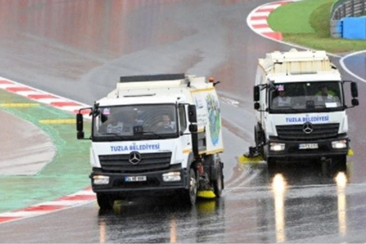 ”Önümüzdeki sene için Russell ve Hamilton'ın yerine bizim çocukları mı düşünüyorsun”Dünyanın en büyük motor sporları organizasyonu olan Formula 1'de heyecan, Türkiye Grand Prix'nde yaşanıyor. Bugün pilotlar sıralama turları öncesinde antrenman seansını gerçekleştirdiler. Bu sırada etkili olan yağışın pist üzerinde oluşturduğu su birikintilerini temizlemek için Tuzla Belediyesi Yol Süpürme Araçları piste çıktı. Geçen sene de tüm dünyanın gündemine giren araçlar, bu sene de konuşulmaya başlandı.