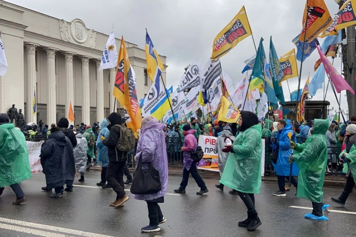 Ukrayna'da Covid-19 salgını ile mücadele kapsamında şehir bazlı uygulanan “Sarı Bölge" ve "Kırmızı Bölge" şeklindeki karantina kuralları başkent Kiev'de protesto edildi.