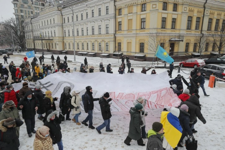 Ukraynalılar Kazakistan'daki protestolara destek verdi. Ukrayna'nın başkenti Kiev'de ve Harkov şehrinde dün düzenlenen gösterilerde “Putin'e hayır” pankartı dikkat çekerken, Ukrayna ve Kazakistan bayrakları birlikte dalgalandı.