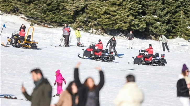 Kar kalınlığının 50 santimetreye yaklaştığı bölgedeki pistleri dolduran tatilciler, güneşli havada kayak ve snowboard yapmanın tadını çıkardı.
