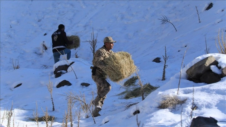 Ekipler, kent genelinde yüksek rakımlı dağları zorluklarla aşarak yaban hayvanları için doğaya yem bırakıyor.
