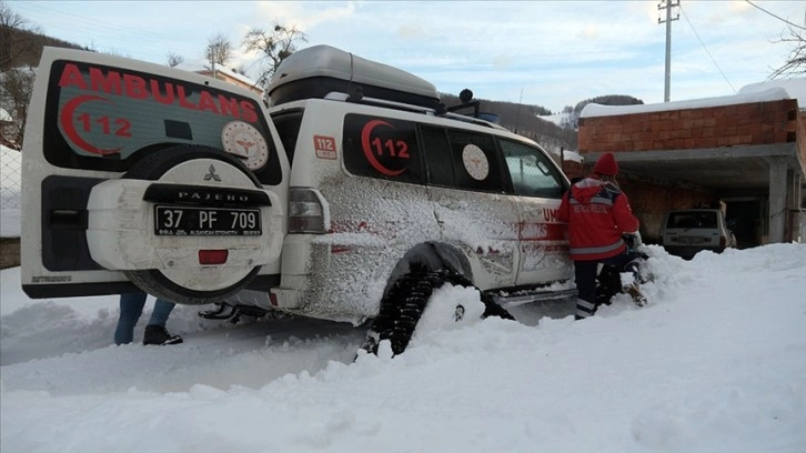 Köy yolundaki kar kalınlığının 80 santimetreyi bulması nedeniyle zor yolları paletli ambulansla aşan sağlık ekipleri, yaklaşık 1,5 saat süren yolculuk sonunda hastaya ulaştı.