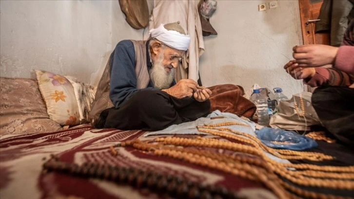 O günden bu yana 76 yıl boyunca düzenli olarak çeşitli boyut ve renklerde tespih yapan Bulut, ilerlemiş yaşına rağmen dağlardan zeytin tanelerini torunuyla toplayarak tespih üretimine devam ediyor.